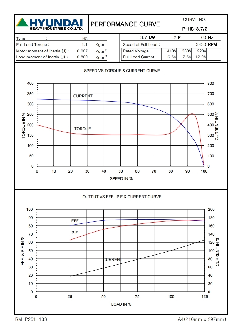 현대모터 삼상유도전동기 5HP 3.7KW 2P 380V 수평형 B3