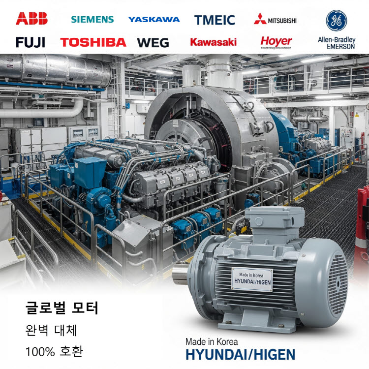 - ABB, Siemens, Nishishiba 등 해외 글로벌 브랜드 모터 100% 호환