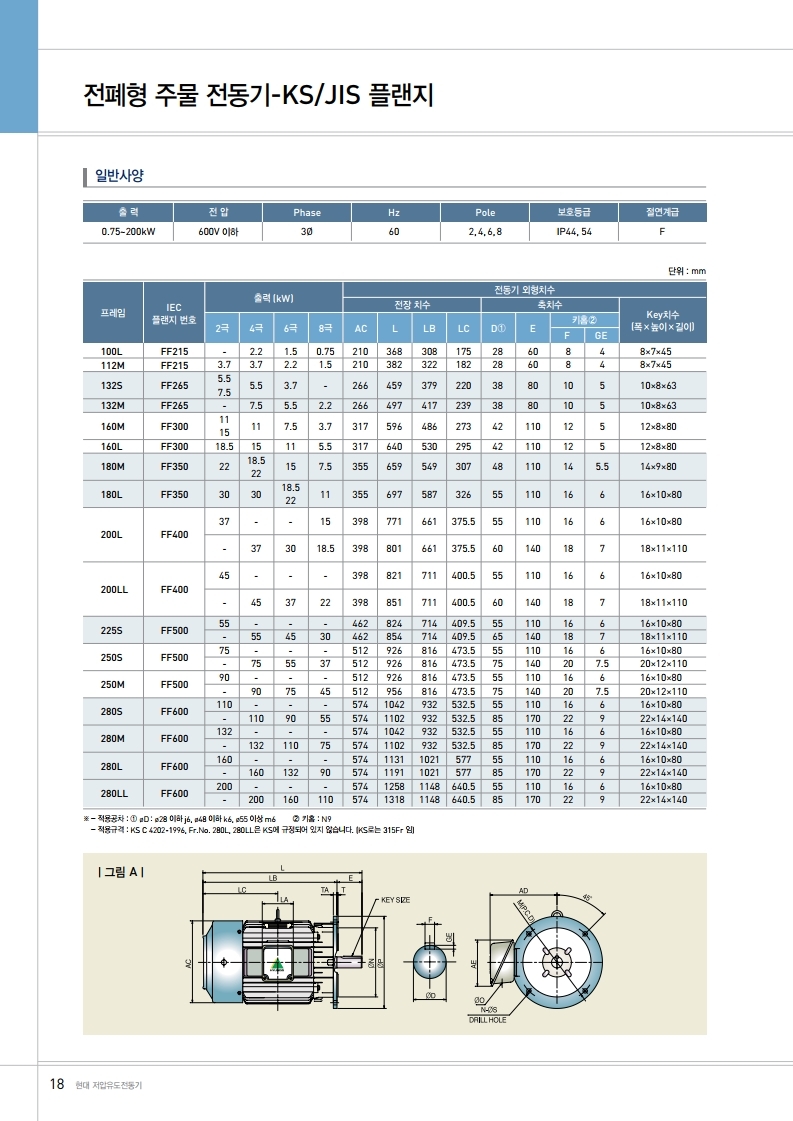 선박용/ 육상용 모터(0.75KW - 160KW / 1HP - 214HP, 380/440V, 50/60HZ, 2/4/6/8P)
