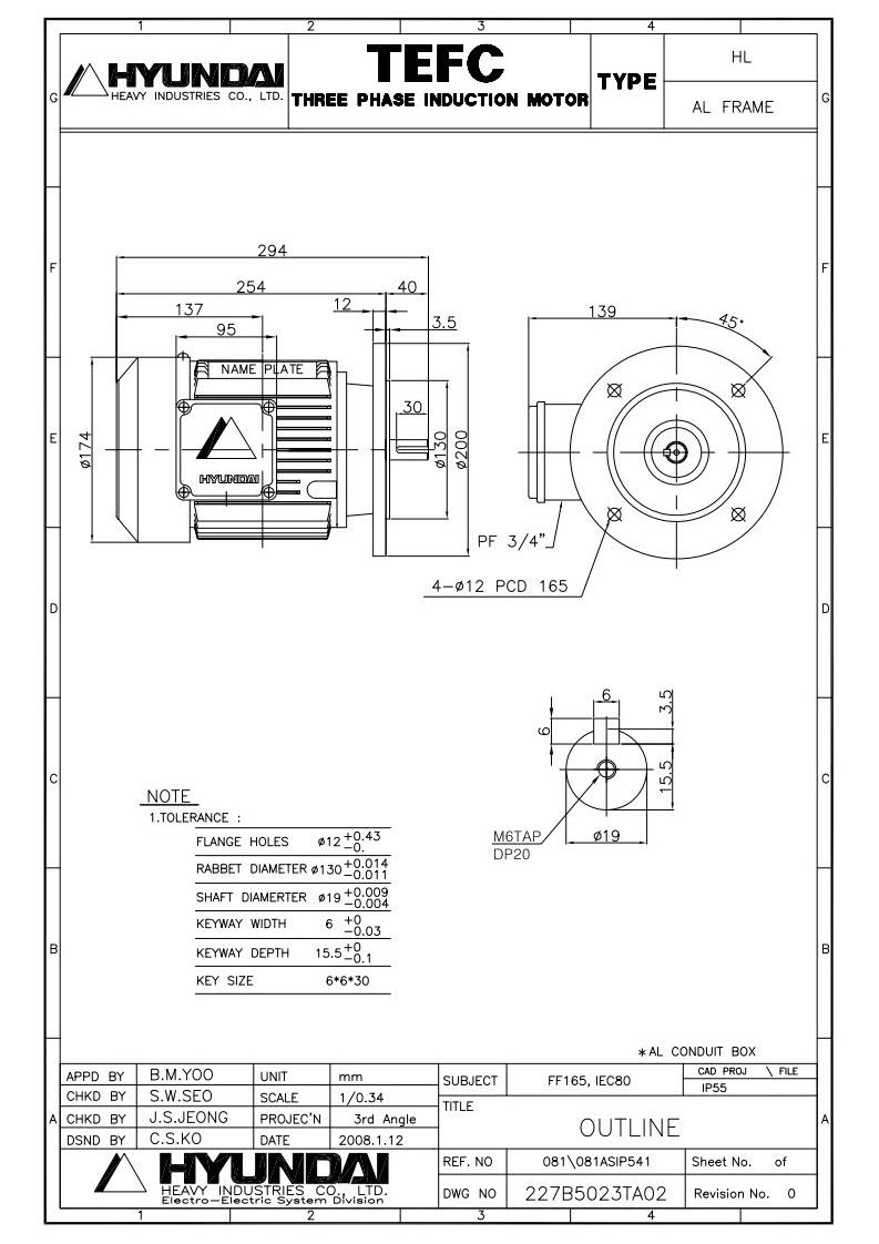 현대모터 삼상유도전동기 1HP 0.75KW 2P 380V 수직형 B5 V1