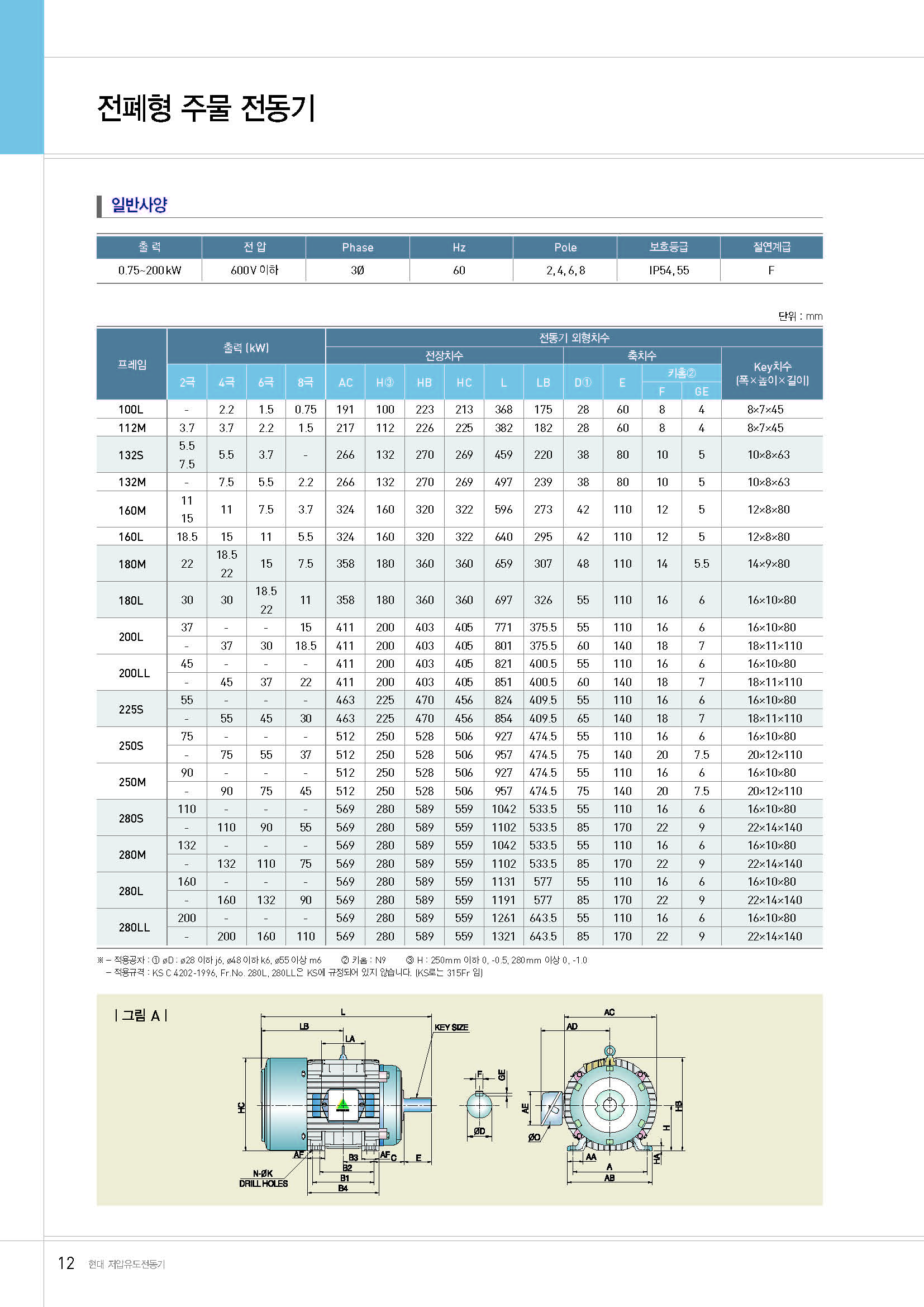 산업용 글로벌 모터 호환모터 펌프 팬 장비 대체품 모터 효성 현대 ABB 지멘스 미쓰비씨 Yaskawa Fuji TMEIC WEG GE Emerson 기타 150HP 110KW 2P 220V 380V 440V 수평형 B3