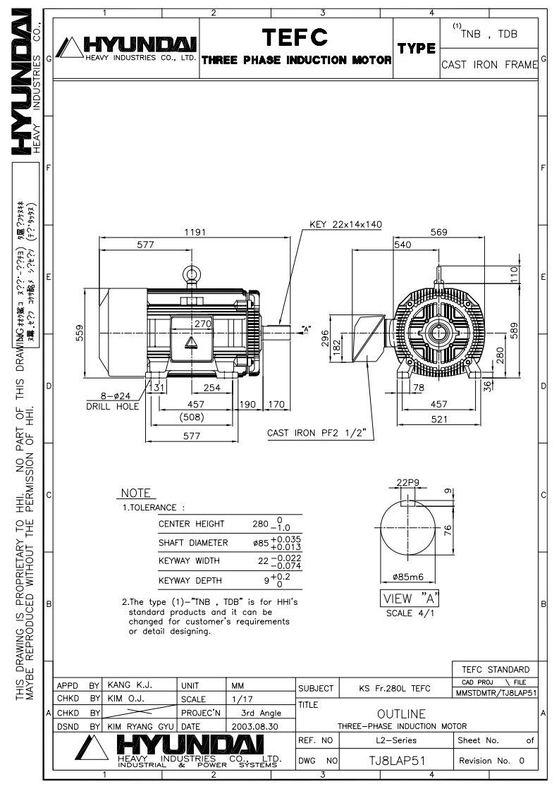 현대모터 삼상유도전동기 214HP 160KW 4P 220V 수평형 B3