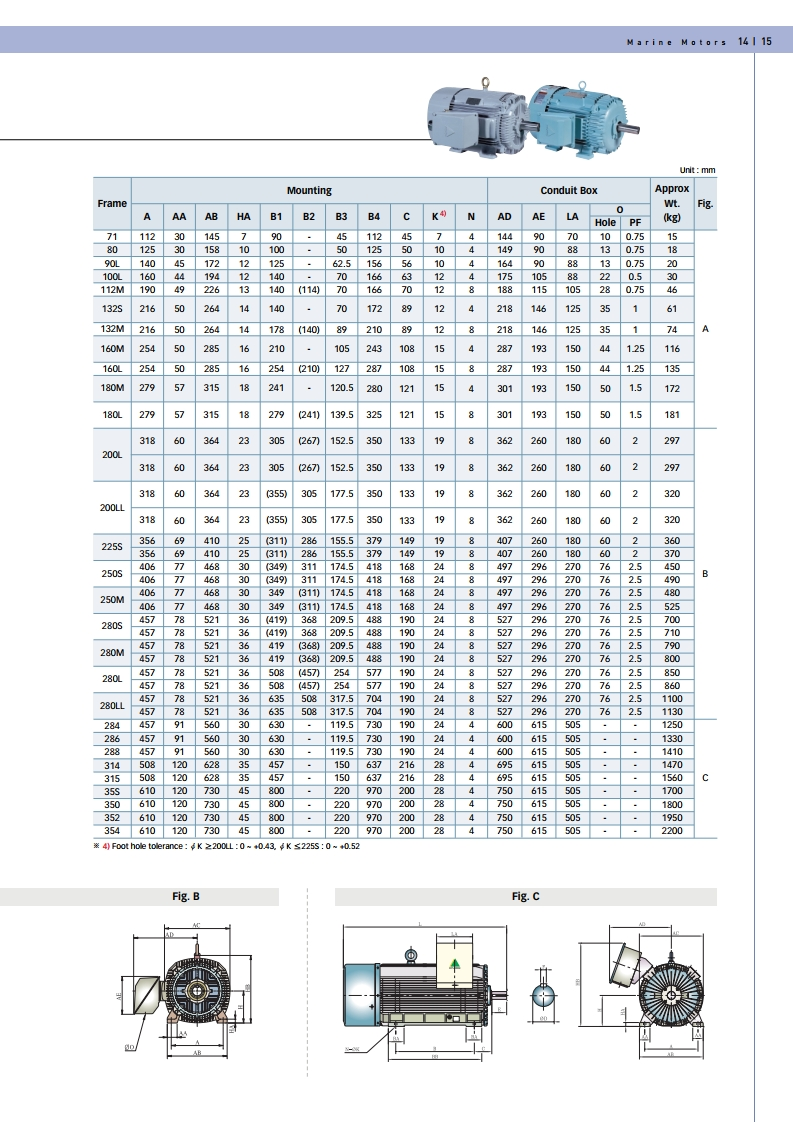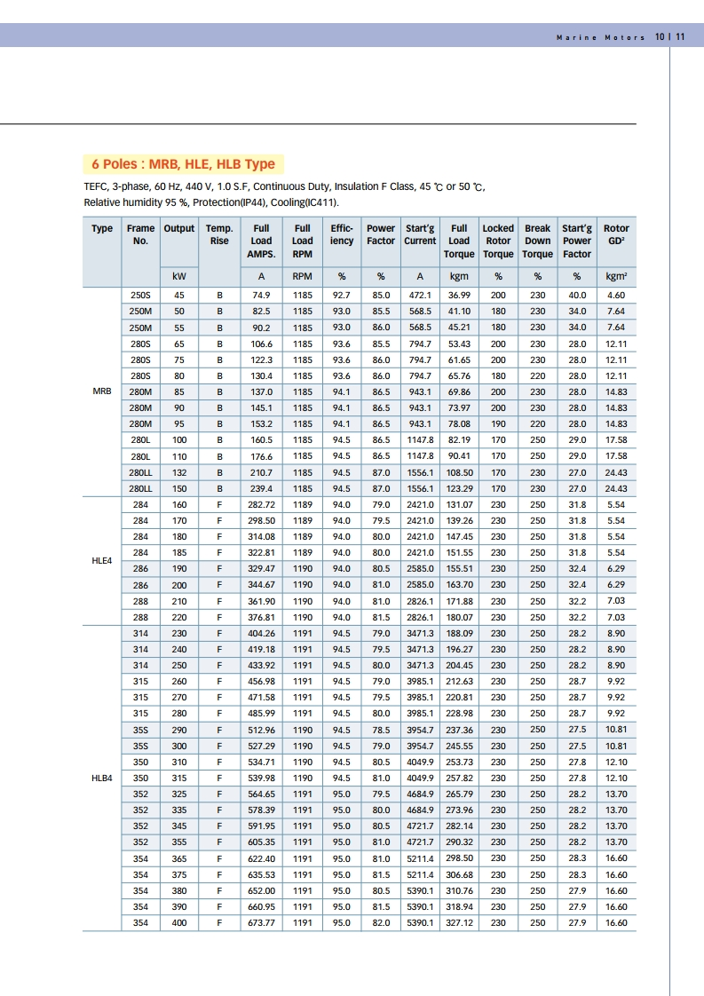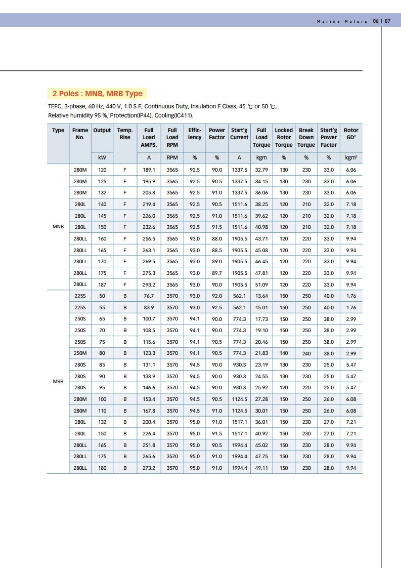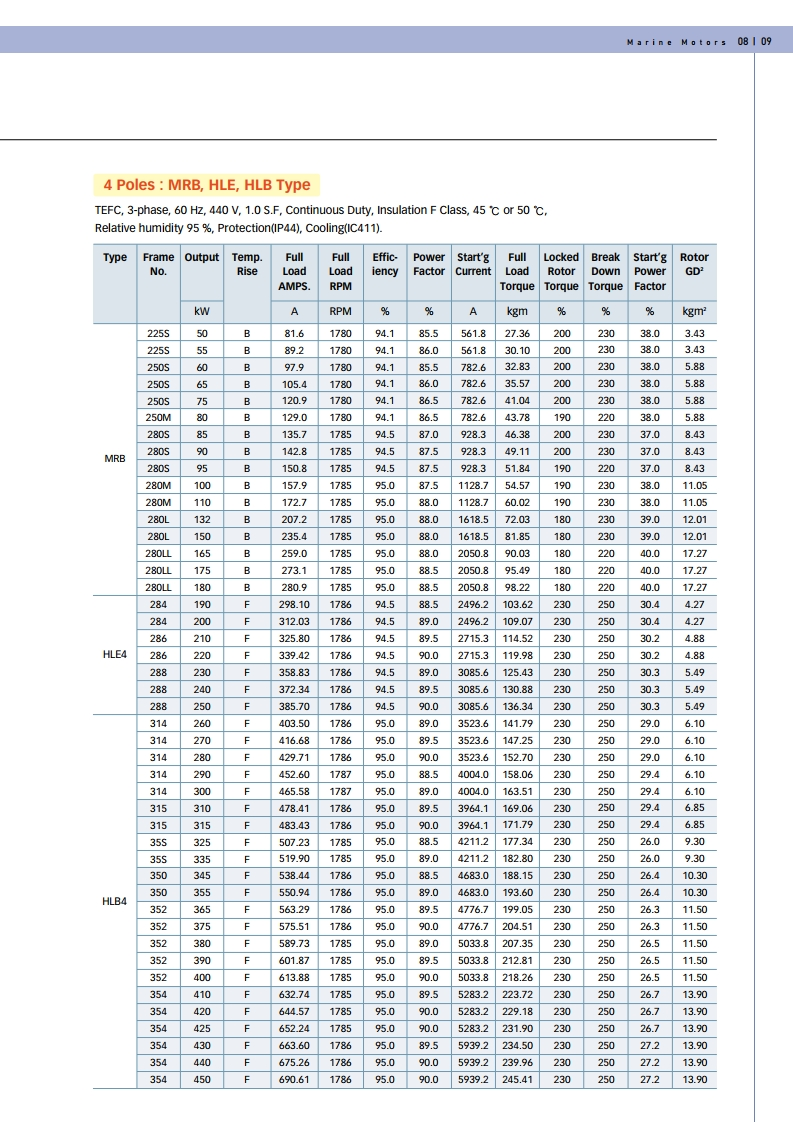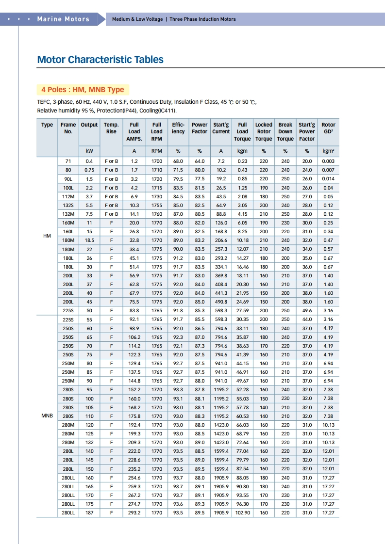 선박용/ 육상용 모터(0.75KW - 160KW / 1HP - 214HP, 380/440V, 50/60HZ, 2/4/6/8P)
