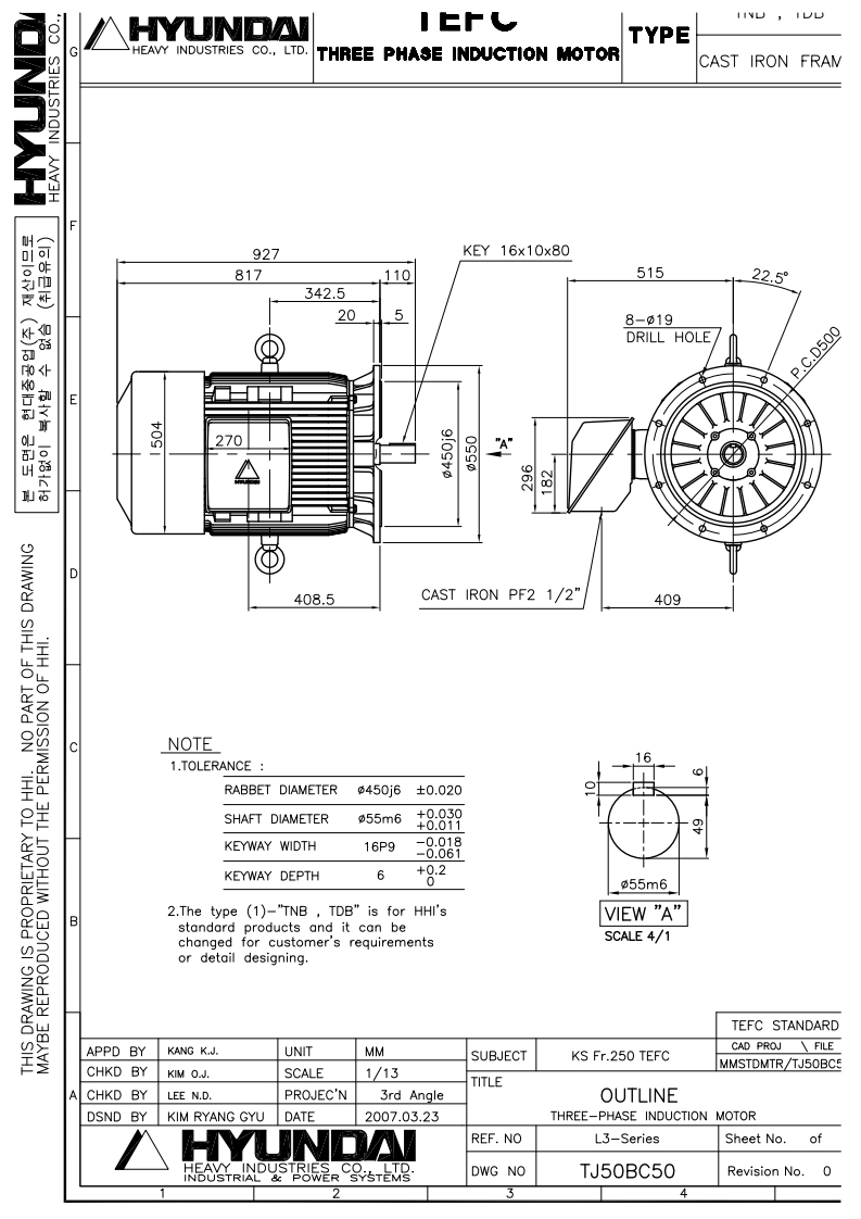 선박용/ 육상용 모터(0.75KW - 160KW / 1HP - 214HP, 380/440V, 50/60HZ, 2/4/6/8P)