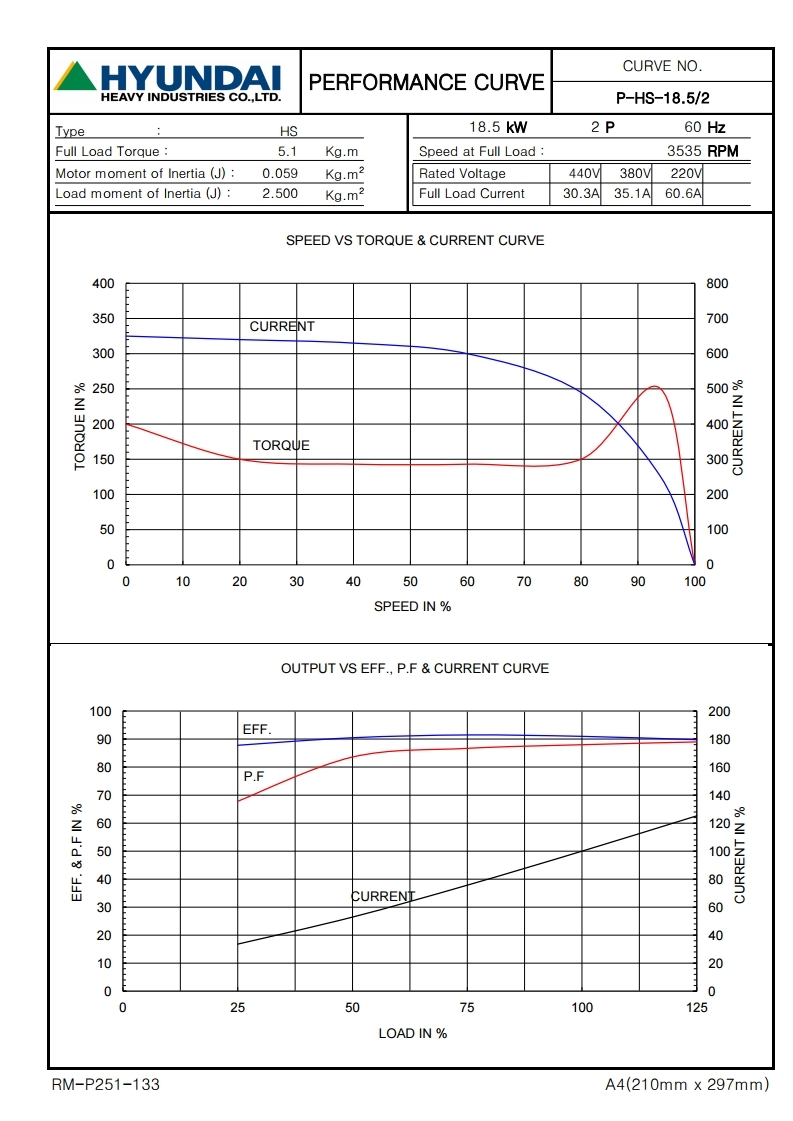 현대모터 삼상유도전동기 25HP 18.5KW 2P 220V/380V/440V B3B5 수직수평형