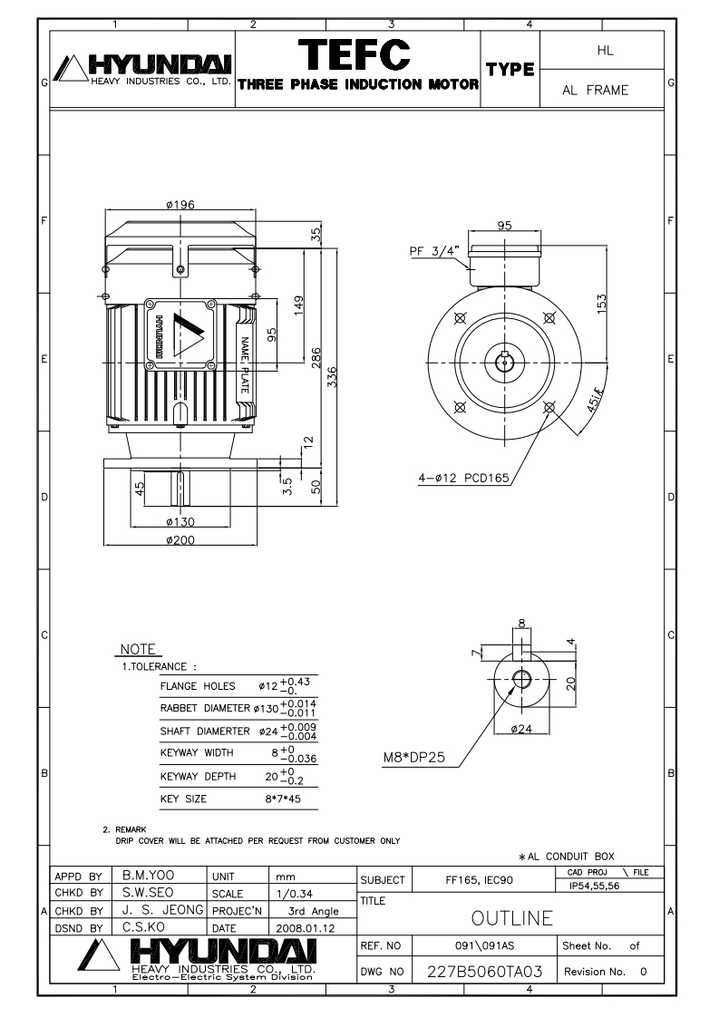 선박용/ 육상용 모터(0.75KW - 160KW / 1HP - 214HP, 380/440V, 50/60HZ, 2/4/6/8P)