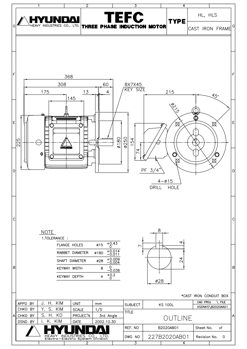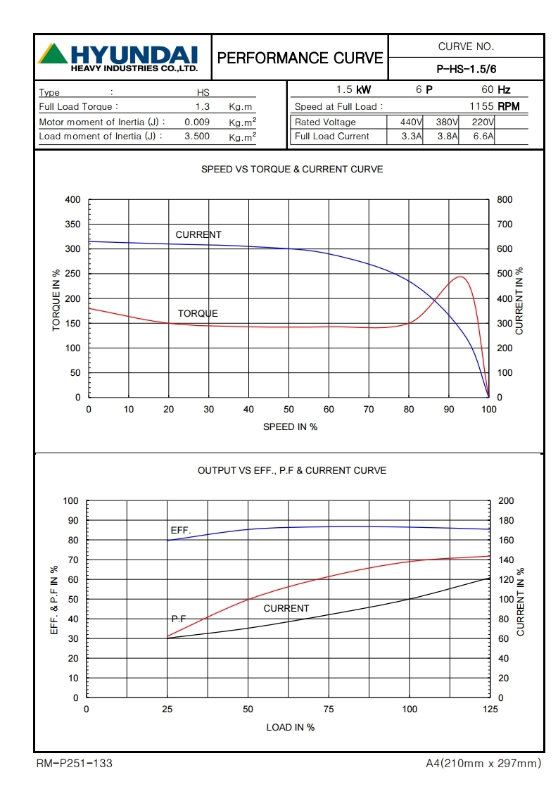 현대모터 삼상유도전동기 2HP 1.5KW 6P 380V 수직형 B5 V1