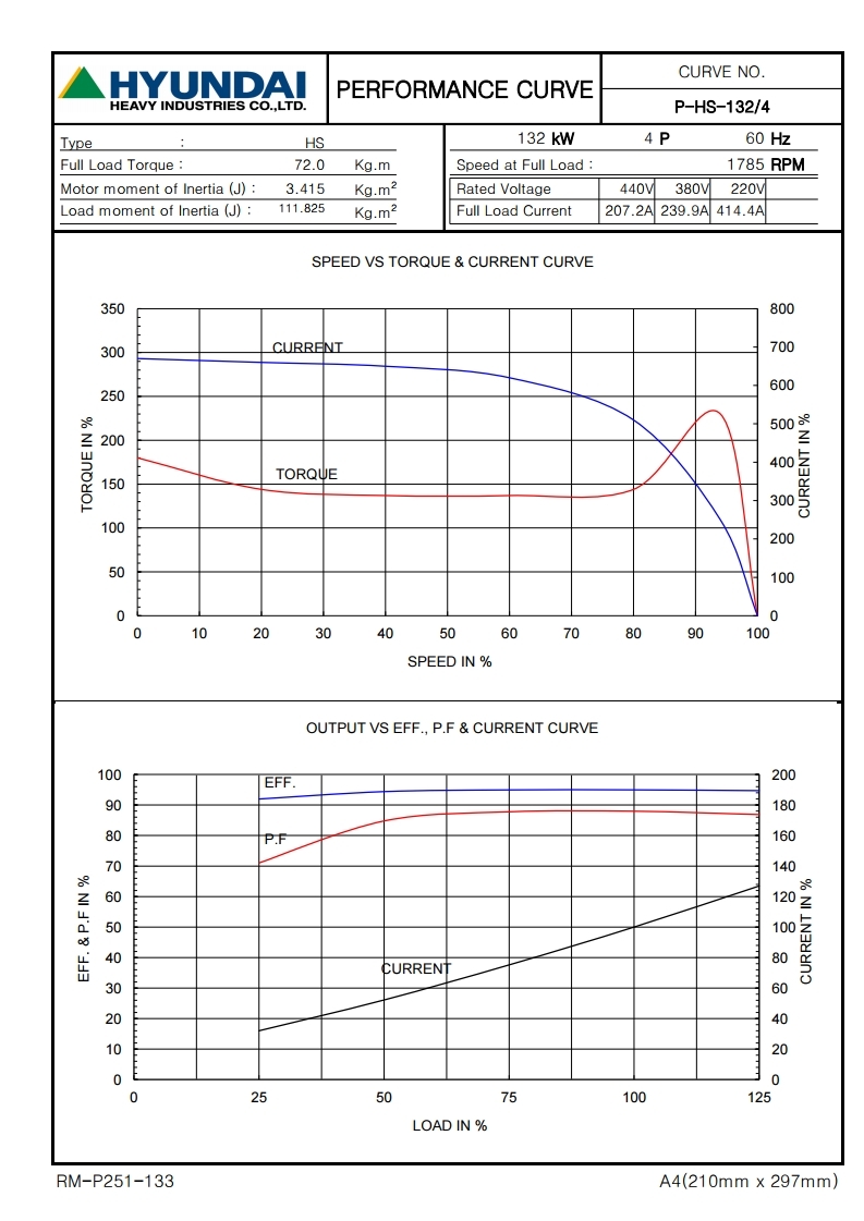 현대모터 삼상유도전동기 175HP 132KW 4P 380V 수직형 B5 V1